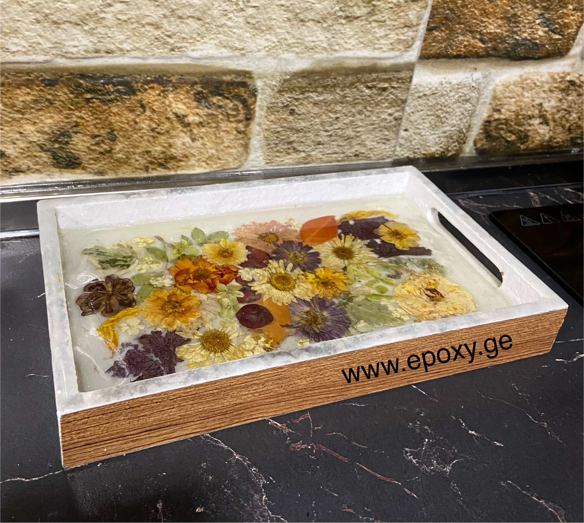 მასალა: ეპოქსიდი, ბუნებრივი ყვავილები