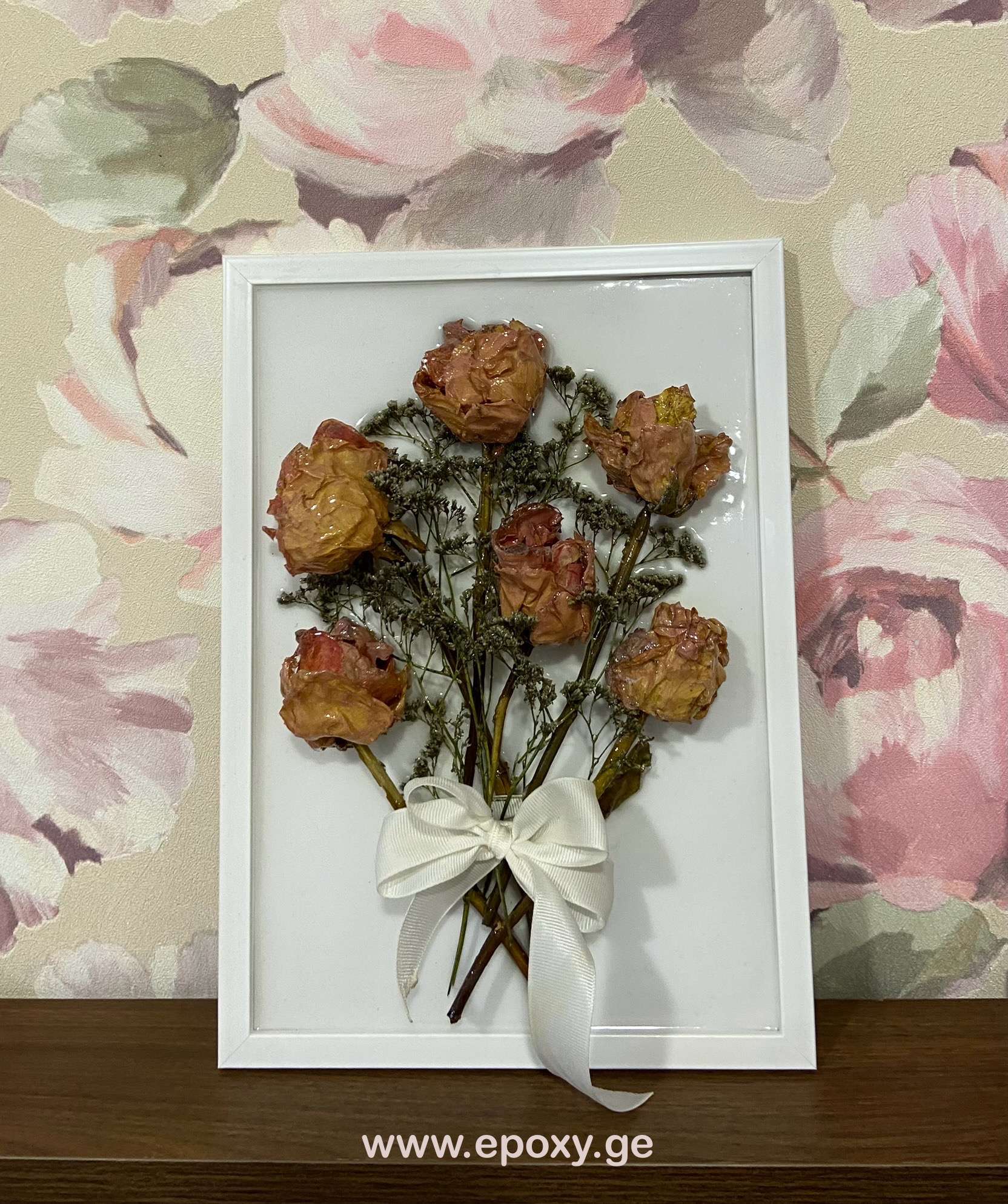 მასალა: ეპოქსიდი, ბუნებრივი ყვავილები.
