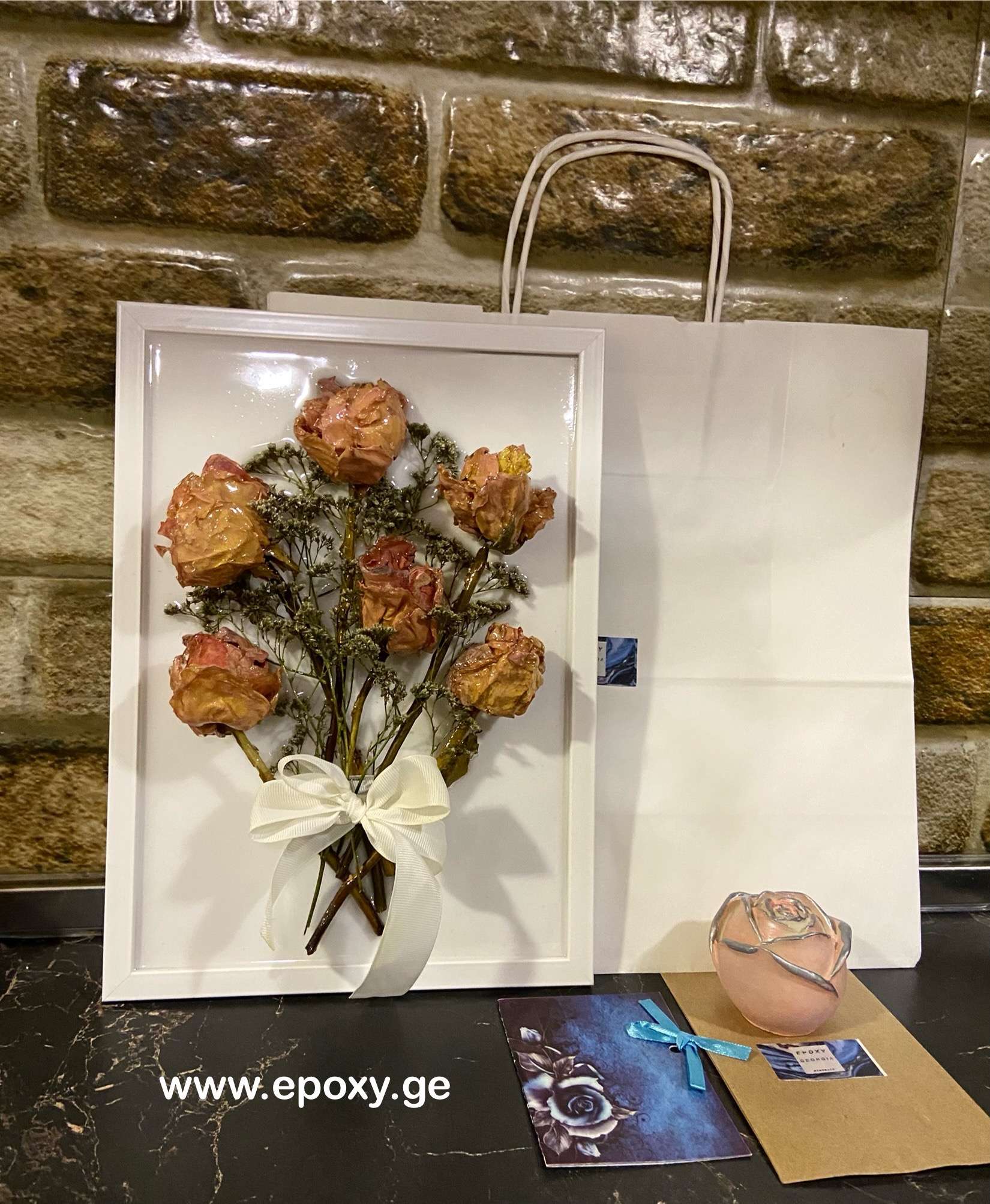 მასალა: ეპოქსიდი, ბუნებრივი ყვავილები.